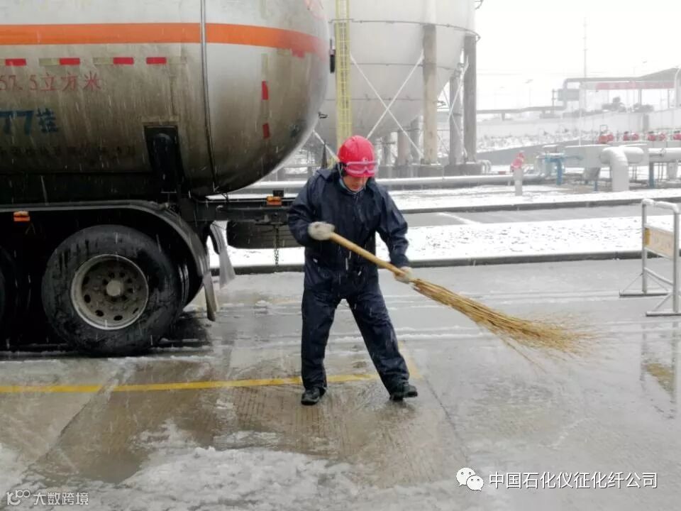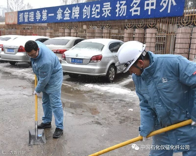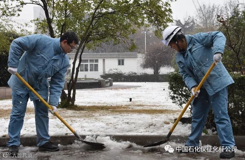 第一场大雪。中国石化仪征化纤公司提早部署,启动扫雪防冻预案,加强厂区道路安全疏导指挥和道路扫雪工作,广大职工一大早克服困难,乘车、骑车和步行,顶风冒雪准时上班,坚守自己的工作岗位,认真巡检,清扫积雪,用实际行动迎接新年第一场风雪严寒的考验。