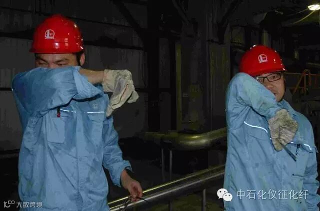 ▲切粒滤网清洗作业,汗水不停地从安全帽中流下