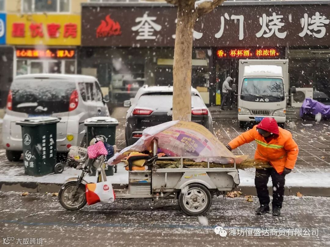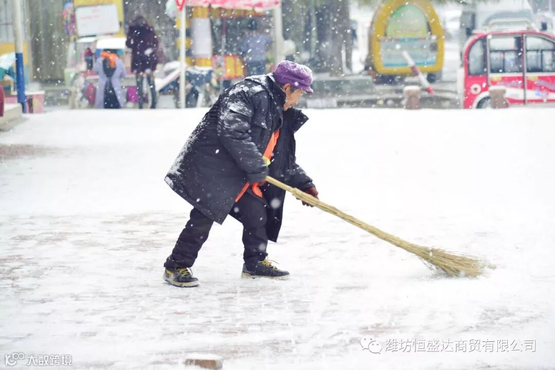 作品简介:早起扫雪的环卫大妈,热心地给行人之路。
