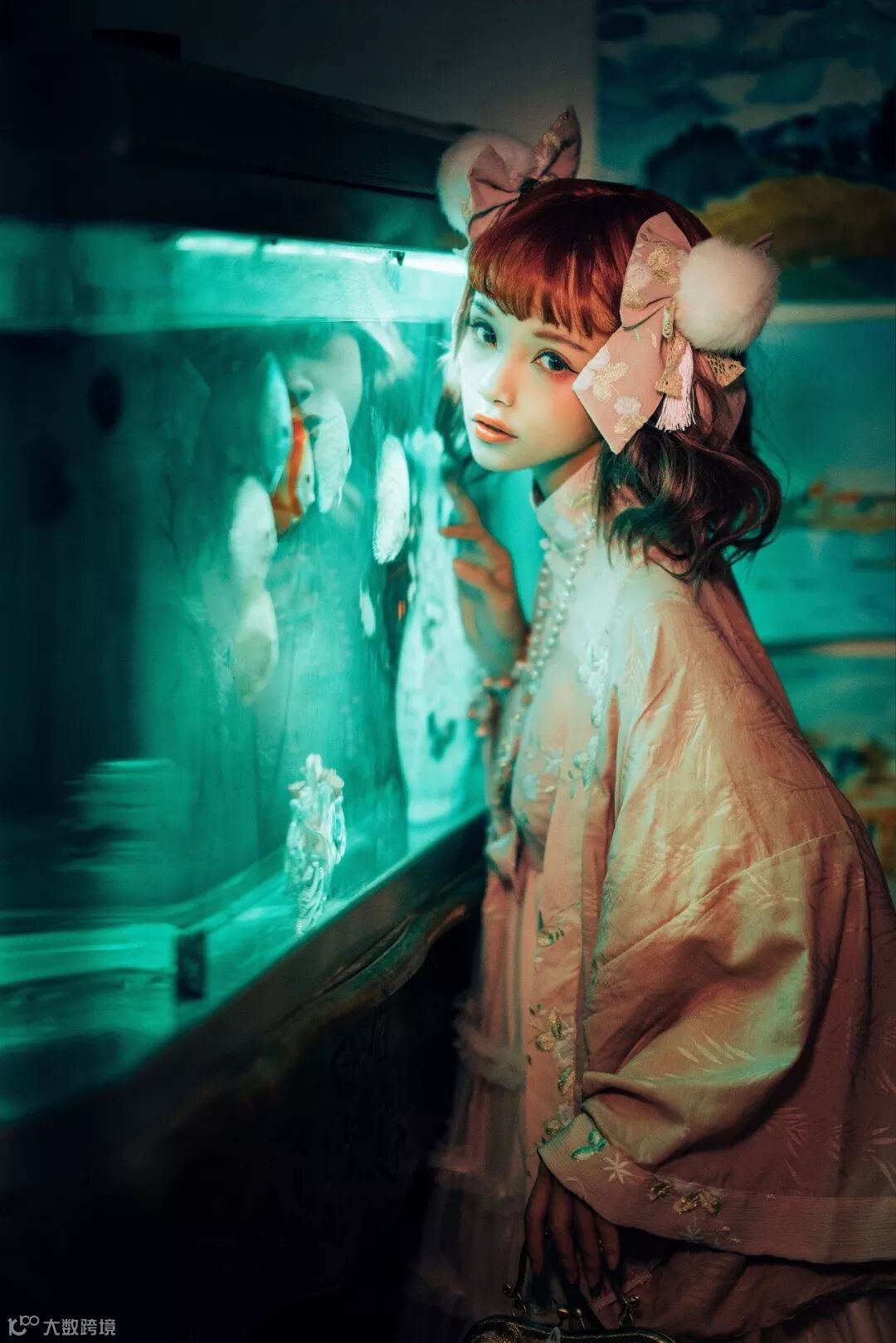 首先来到楼内居民饲养的观赏鱼旁进行拍摄,在对环境光进行测光判断后,将相机ISO锁定在1000,保证足够的快门速度,同时能较好的跟上模特动作。这组拍摄的重点是充分利用渔缸的绿色环境光来为模特制造轮廓光形成对比。通常大家会认为绿色不好看,但是由于绿色和黄色是相邻色,在使用黄色LED对人物进行补光后会显得十分和谐。
