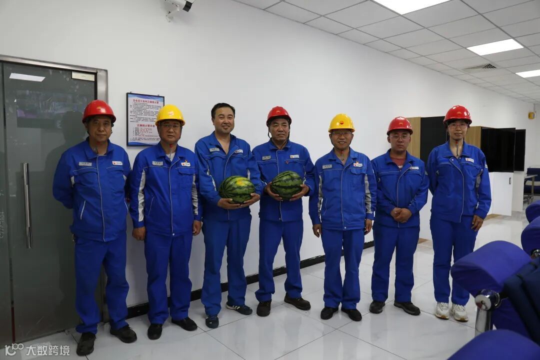 一个个甜甜的西瓜为酷暑中坚持奋战的一线员工送去清凉,希望他们在搞好生产建设的同时,要注意安全生产和防暑降温,确保身体健康和生产安全。