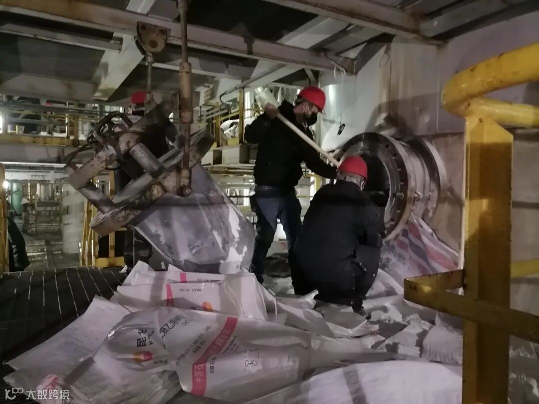 待顶层罐体清理干净时,天已大亮,一行人拖着疲惫的身躯走在回家的路上,满身满脸全是粉料。经理刘年国一夜水米未进,不仅需要同甲方协调,还要安排具体工作,与工人们一起清理粉料,几十米高的罐体不知上下多少次,大家看到领导同自己一起拼命干活,整整一夜没有一句怨言。大年初一,又组织队伍对一层、二层罐体粉料继续清理,作业到晚上6点多,初二,继续作业,直到达到甲方生产要求。