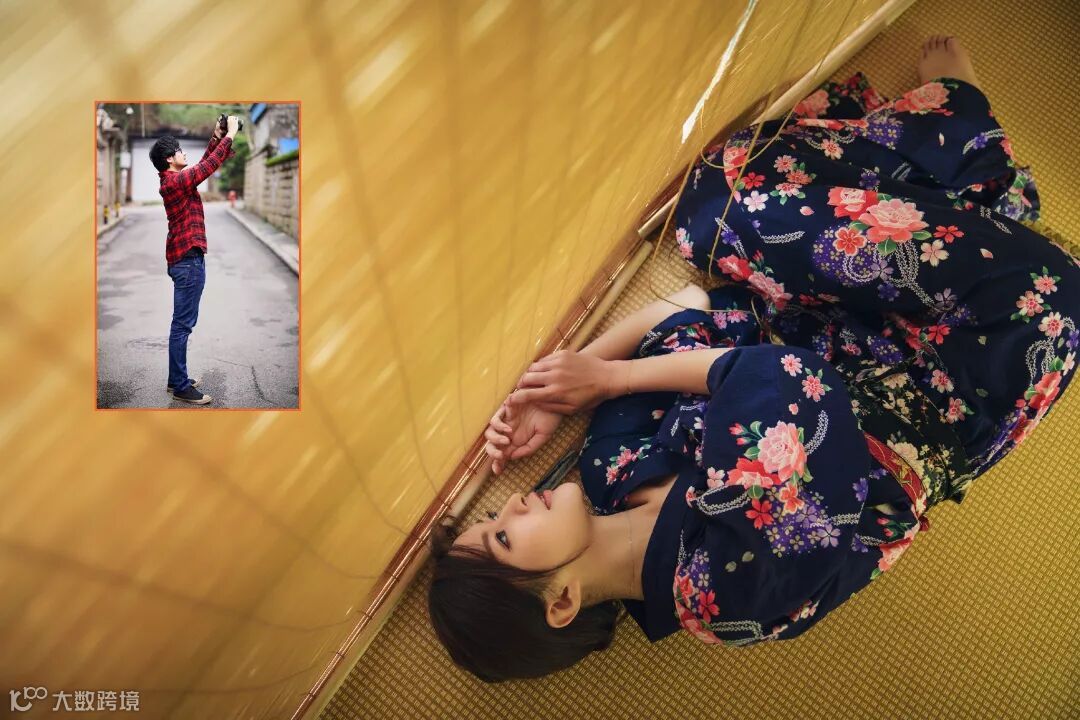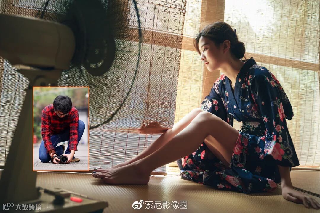 以这张图为例,我和模特之间,有一个屏风阻挡。我想要拍摄一个小孔成像的画面,所以镜头透过屏风的缝隙,通过手动对焦,放大对焦来调整焦距。