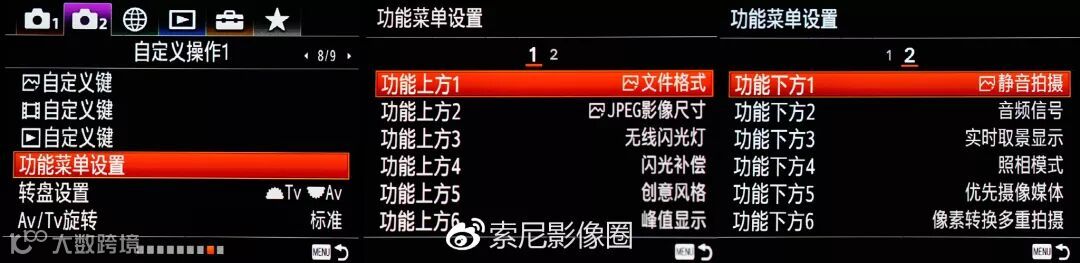 索尼微单A7R3拥有丰富的自定义按键设置,共有13个自定义按键和12个功能菜单设置。这两者有什么区别呢?13个自定义按键是独立按键,可控自定义。12个功能菜单设置,则是按下FN的按键所呼出的12个菜单,需要进一步进行选择。