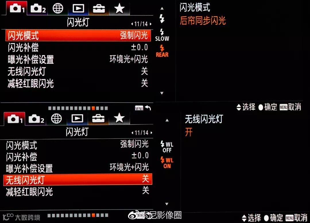此外,A7R3上对闪光灯的逻辑也做了一些优化。现在把是否开启无线闪光灯单独罗列了一个菜单,闪光模式一个菜单。而不是像以前一锅粥的放在一个菜单里,导致开启无线引闪的时候无法实现后帘同步功能。