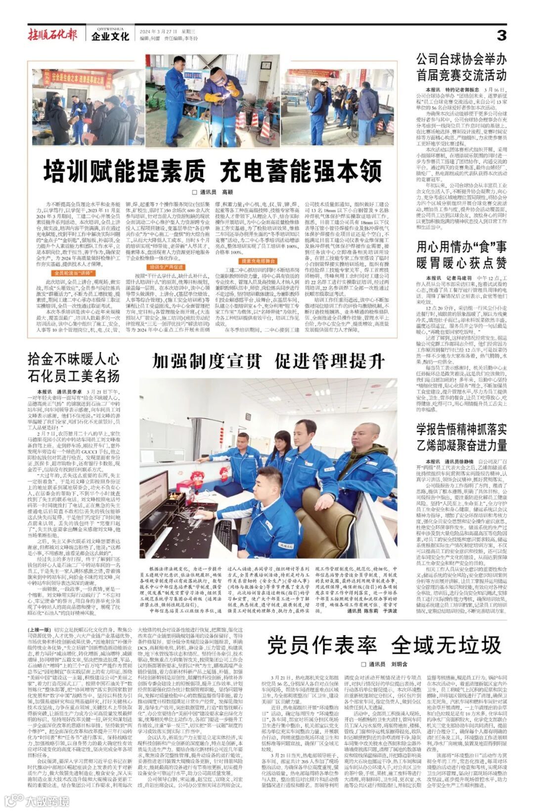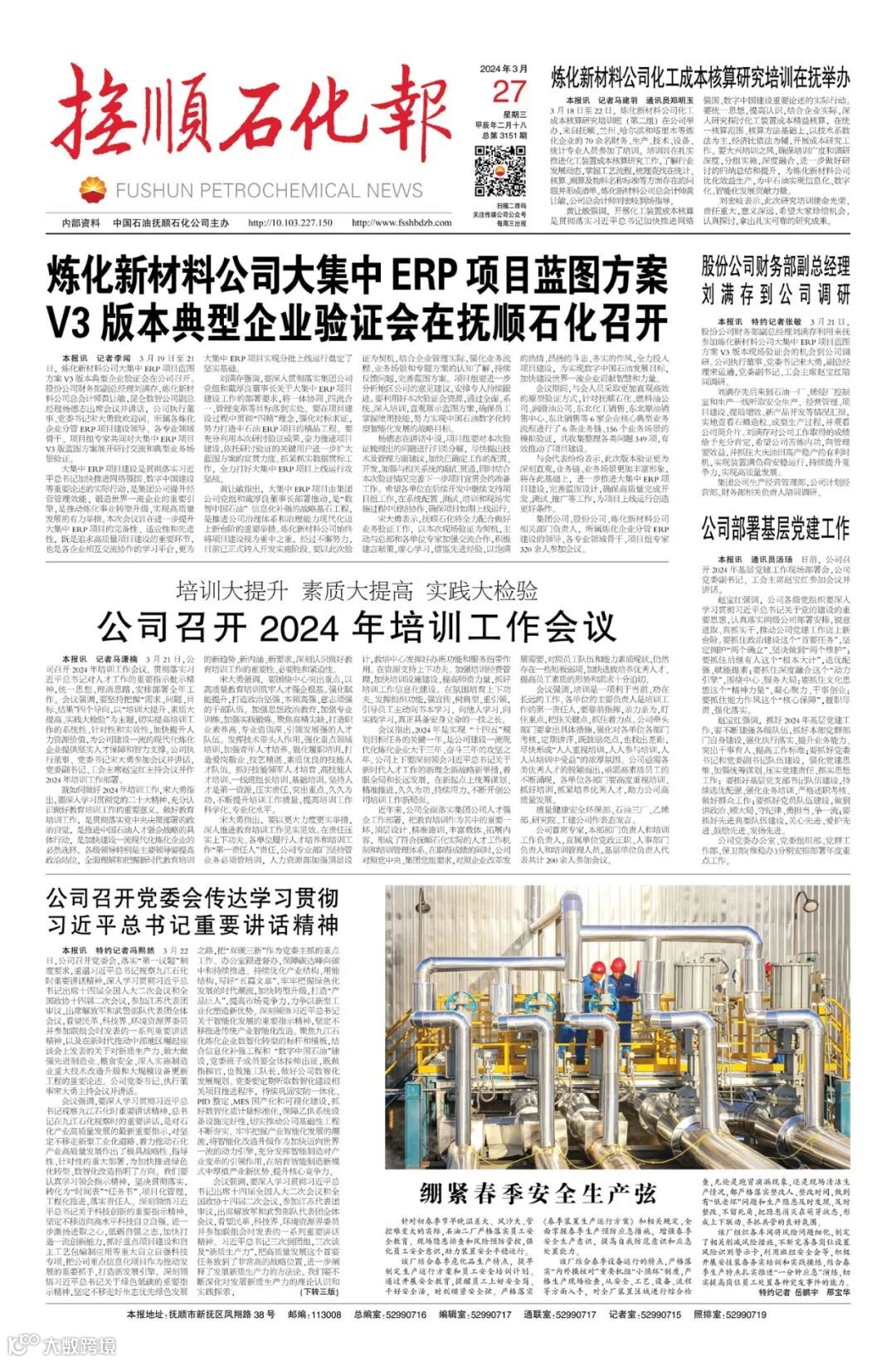 《抚顺石化报》2024年3月27日 抚顺石化人