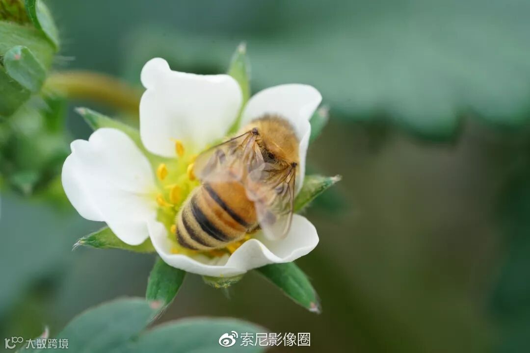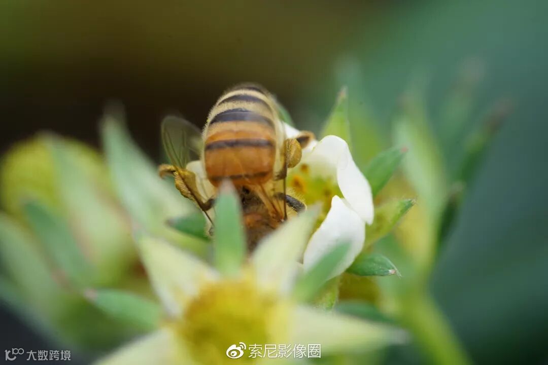为了保证微距下的景深,光圈通常会缩小到F8-11来拍。为了能拍到这样移动很快速的蜜蜂,快门速度就不能慢,所以即便是大白天,ISO也低不了,这就很考验机身的高感性能了。