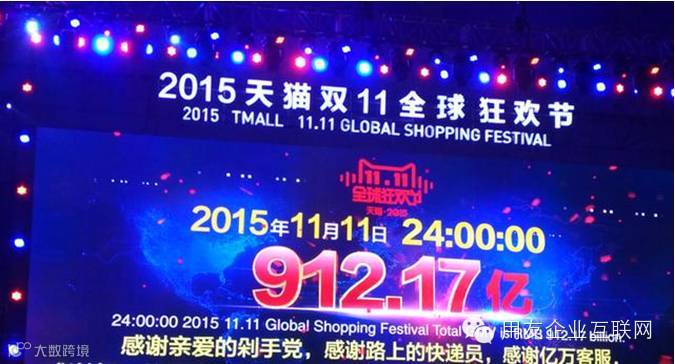 双十一当天阿里巴巴旗下各平台总交易额达到912亿元,