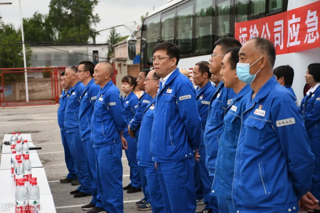 2023年6月20日,东部运输二中心车场内队伍排列整齐,干部员工精神抖擞,运输公司在此举办客车火灾事故逃生应急演练,来自各单位干部员工近100人参加了演练观摩。