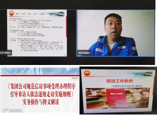 ⼆是大讲堂直播课堂提升赋能精准培训。处领导亲自着手制作《信访工作条例》和《集团公司规范信访事项受理办理程序引导来访人依法逐级走访实施细则》释义解读与实务课件,采取中油易连线上形式授课,把中共中央、国务院印发的《信访工作条例》了《信访工作条例》知晓度,进⼀步提升维稳信访从业人员业务能⼒,⽤《信访工作条例》指导实践,⽤实践推动信访⼯作,勇于担当,积极作为,不断开创信访⼯作新局⾯。