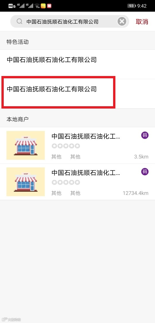 登录成功后点击“生活”栏,上端搜索栏输入“中国石油抚顺”搜索, 选择第二项“中国石油抚顺石油化工有限公司”(图二)