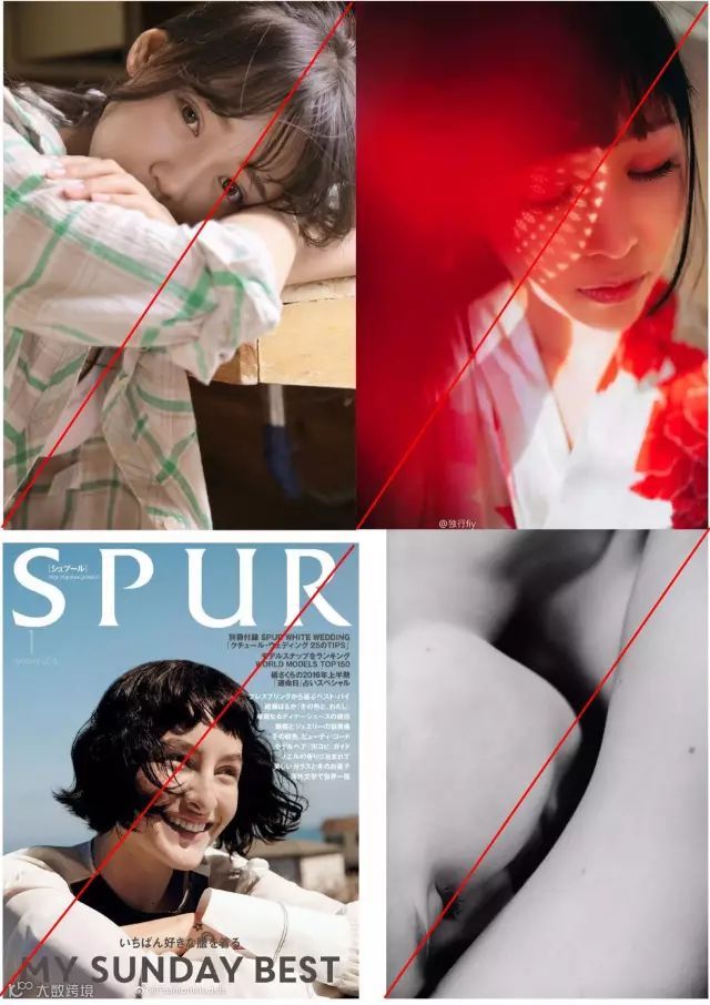 无论是遮挡、趴下、细节描写,请将模特的视线放在左右对角线上,加神秘感的同时,构图也更加显得有重心。