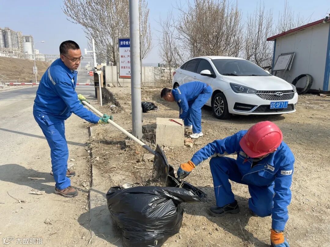 烯烃厂党委领导关注到这个问题后,亲自到场考察情况,立即组织相关部门进行调研整顿,党员干部和青年志愿者们自发携带手套、铁锹、扫帚等清扫工具,主要针对白色垃圾和烟头进行清理。
