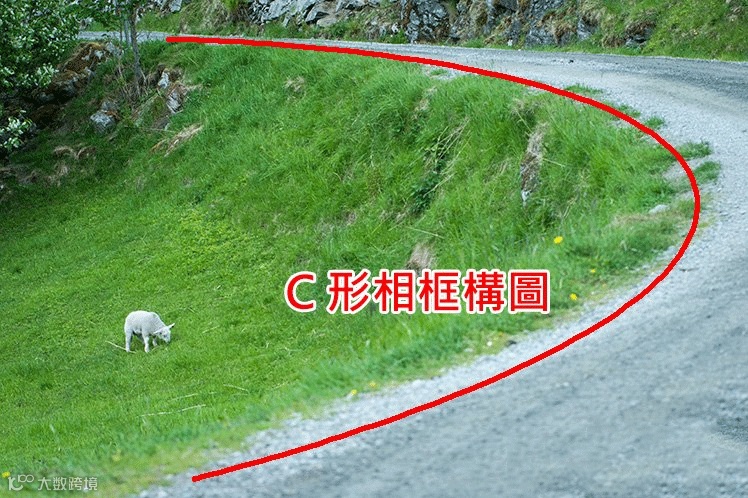 如果你发现一些C形的道路,你可以看看 C 形的弯位会否包含着一些有趣事物,如果有的话,这个C 形道路便可以成为一个虚拟相框,令有趣点更突出!