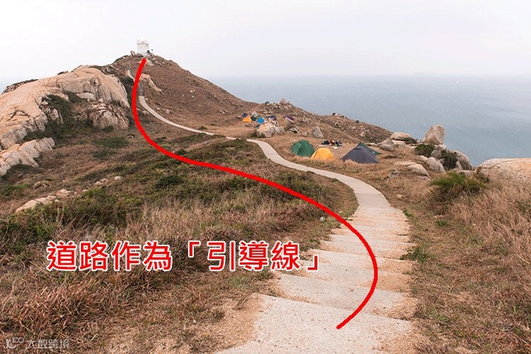 例如拍摄灯塔相片,不妨在附近找一条可以当引导线的道路,然后好好放置灯塔和道路在相片的位置,利用道路把读者的目光引导到目标物上,这样便可以增加相片的可观性,不再拍出平凡的相片了!