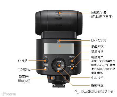 背面是索尼HVL-F45RM的主要操控区域,设有一块大尺寸LCD显示屏用以显示菜单内容,同时显示屏也拥有背光显示,方便在灯光较差环境下看清屏幕内容。按钮分布均匀,每个按钮也有各自的功能,可方便快速的进行操作。同时还支持按钮的自定义功能分配,让操作更加得心应手。