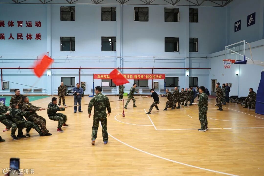 "春节将至,为了丰富指战员的业余文化生活,不断巩固队伍凝聚力和战斗力。消防支队结合工作实际,开展了“迎新春、新征程、新气象”趣味活动。活动分为:群龙取水、拔河、桃花朵朵开、搬砖过河等趣味活动。指战员们积极参与、热情高涨,团队之间既相互比拼又互相鼓劲,掌声、笑声、加油声此起彼伏,指战员们对趣味活动给予了高度赞许,表示在紧张的工作之余愉悦了身心,为今后的执勤战备工作积蓄了力量。"