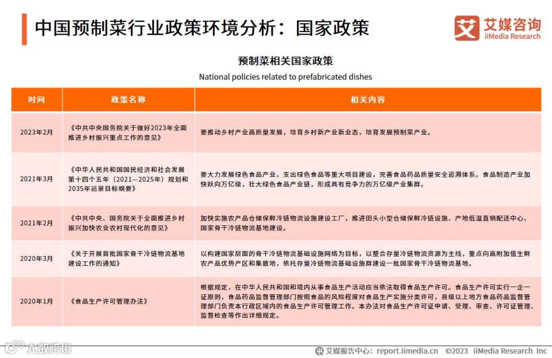 近年来,中国政府陆续出台一系列法律法规,对食品生产、加工、流通环节进行规范,并建立了食品安全追溯机制,为预制菜行业提供了良好的发展基础。