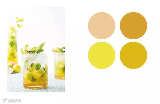 整幅画面的色彩配合统一,能够产生悦目、协调的效果。这种搭配手法可谓简单易行,但效果出众。汤圆这张图片即采用此种方法,基调为红色,并以红色、消色(白、黑)搭配,产生调和之感。