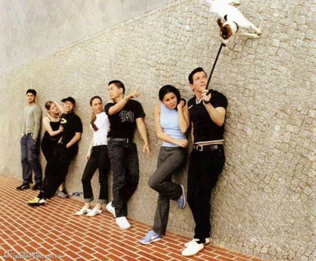小白狗狗应该给最后面的小哥牵着嘛。