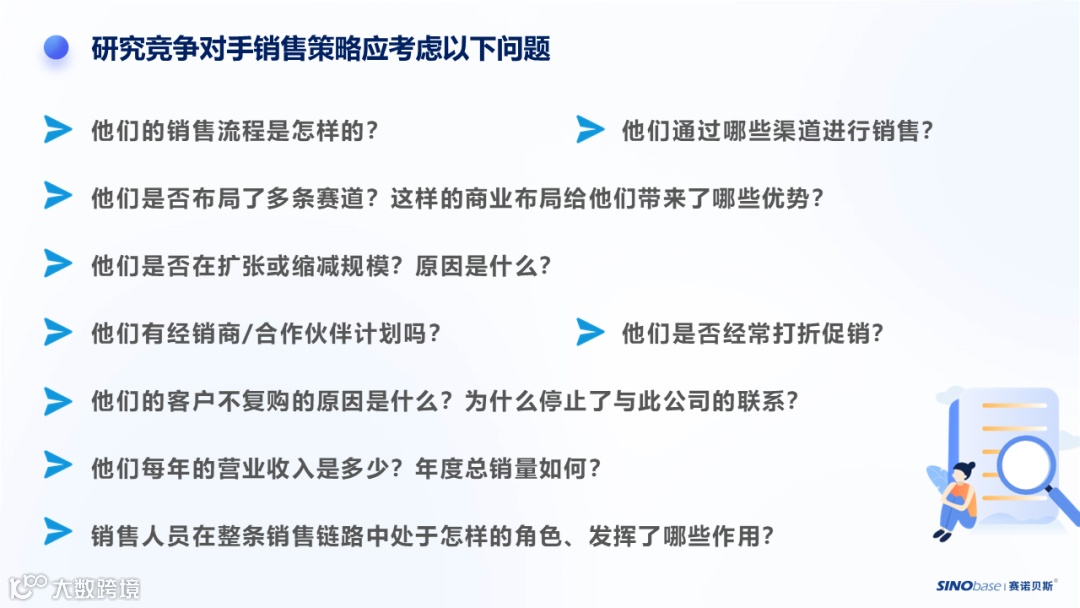 以上这些信息能够帮您清晰地了解竞品的销售流程,甚至可以帮助自家销售取长补短,提升售卖竞争力。在这些信息的获取渠道上,如果对方是上市公司,可以直接通过在线查找的方式来搜集,如果对方是私营企业,就需要经过一些调查。