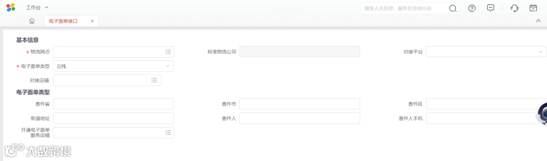 第二步:选择【物流管理】-【电子面单接口】,设置基本信息和电子面单设置。