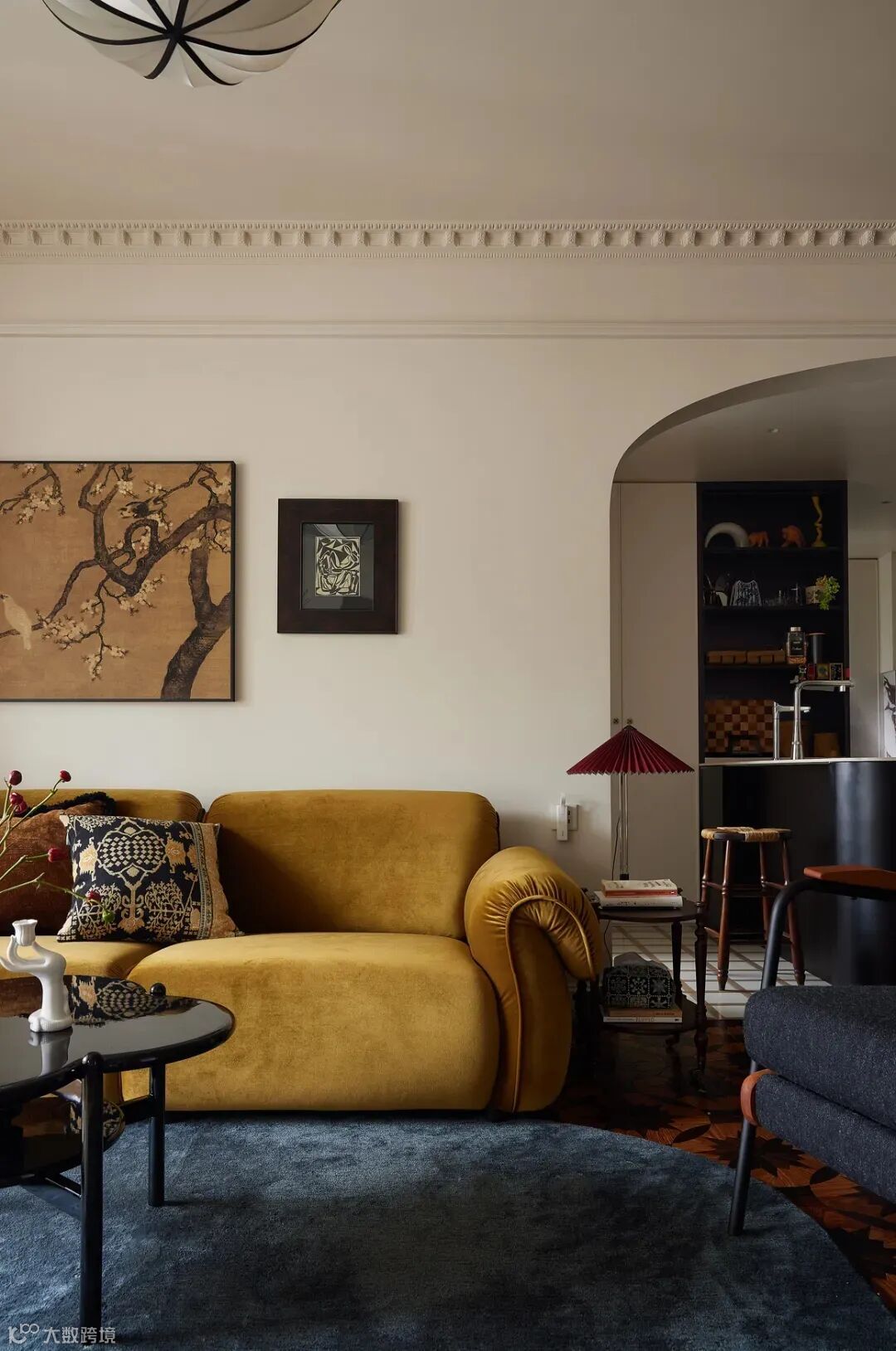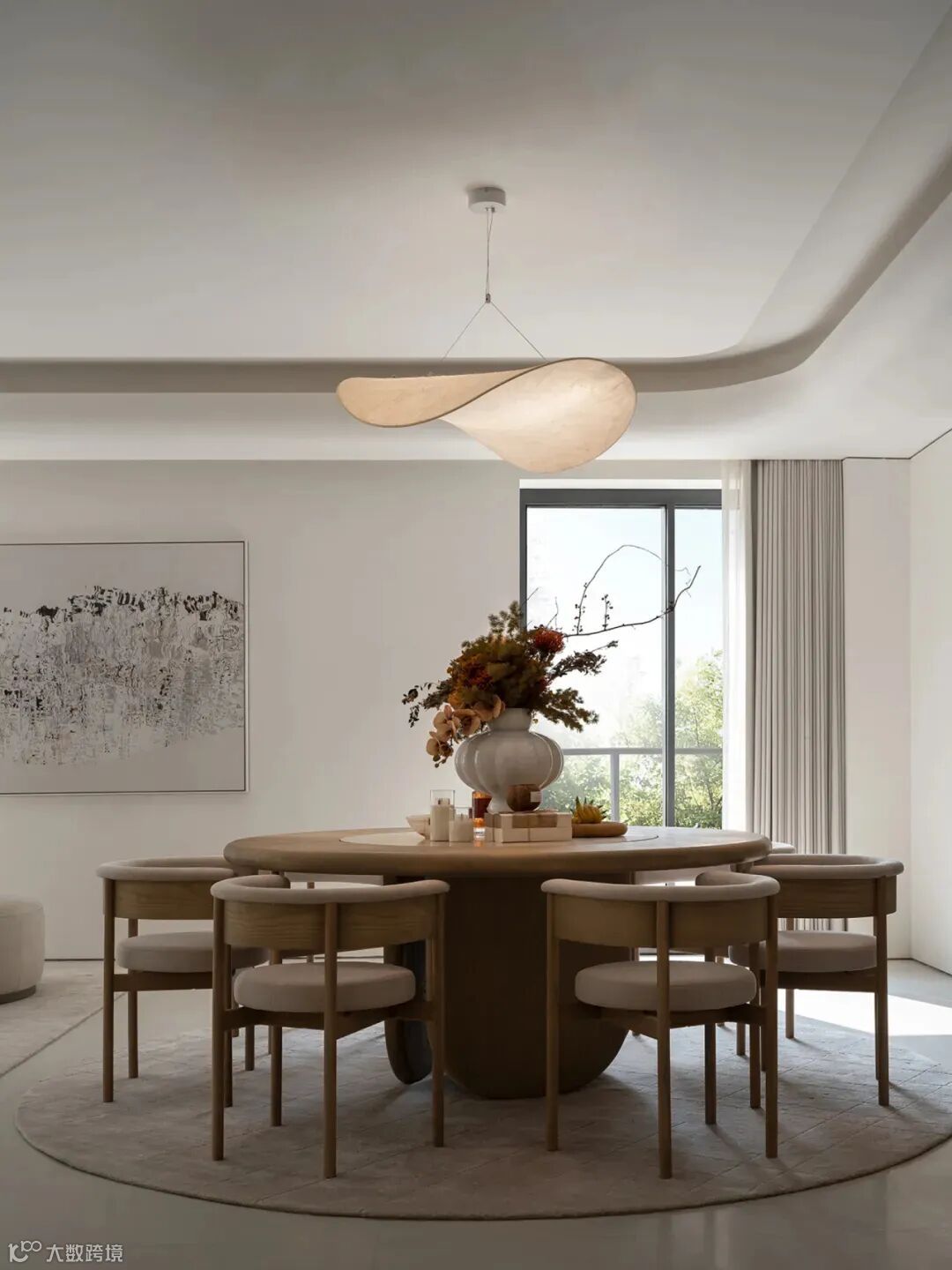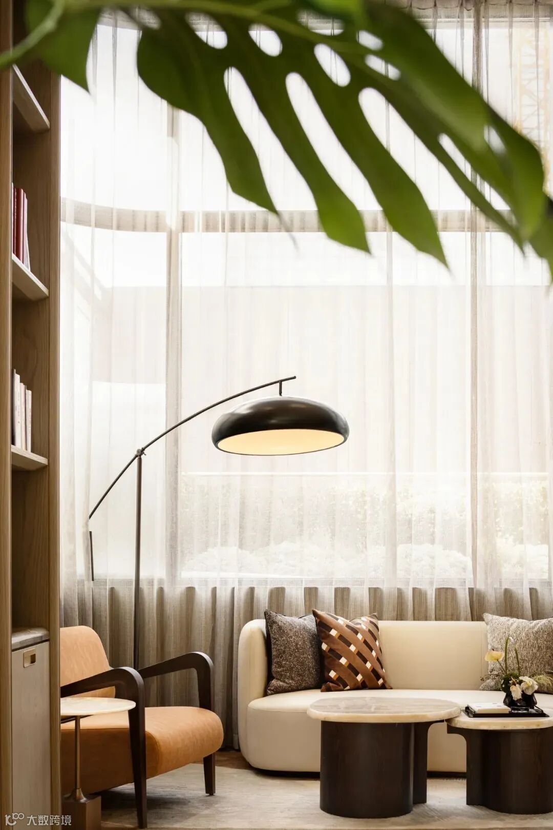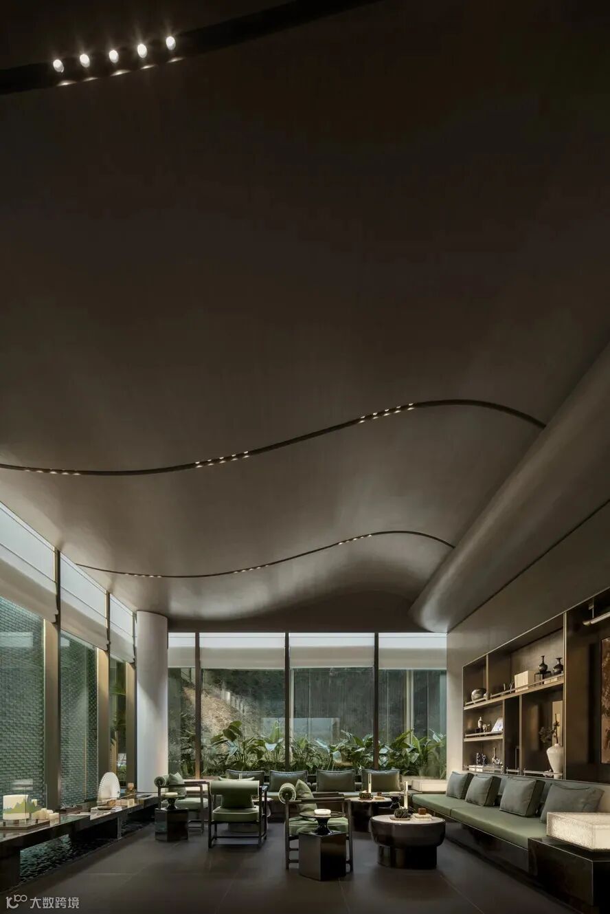 空间中增添了许多布幔,能让空间变得更加柔和。弧线“月梁”等元素的运用,是对传统岭南建筑的当代诠释,月梁上“百鸟朝凤”的雕刻图案造型优美灵动,充满自由祥和且生机勃勃的气息!