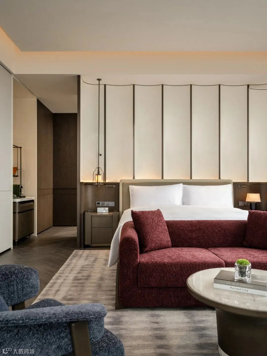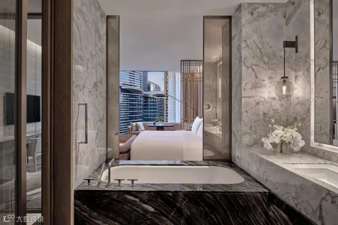 卫浴空间采用Yabu Pushelberg设计的产品,对船桩文化进行诗意的二次演绎。现代主义风格以简洁的形态满足人对于都市生活的向往,同时在此逃离城市繁华喧嚣,沉浸于一方宁谧的天地,休憩心灵。