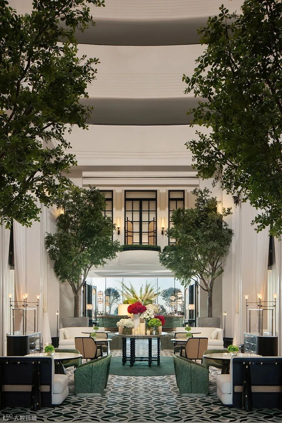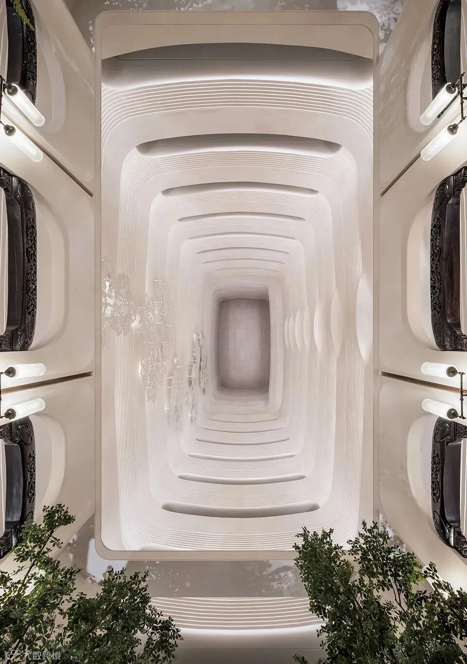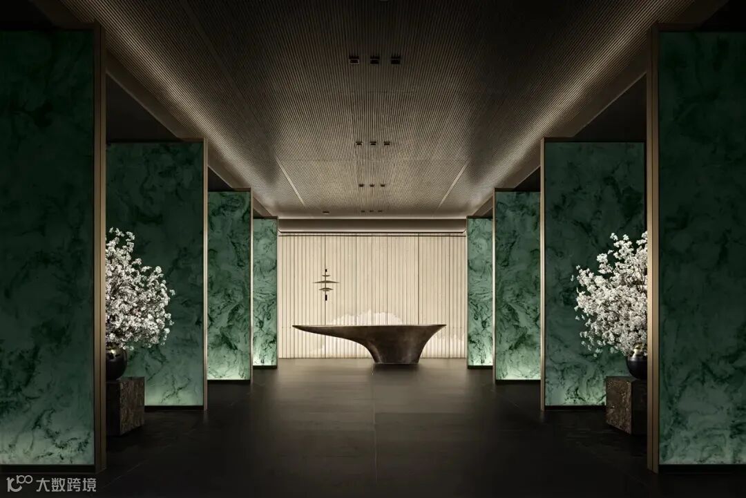 落客区垂直花园与悬挂绿植密布,展现出层层递进的秩序感。