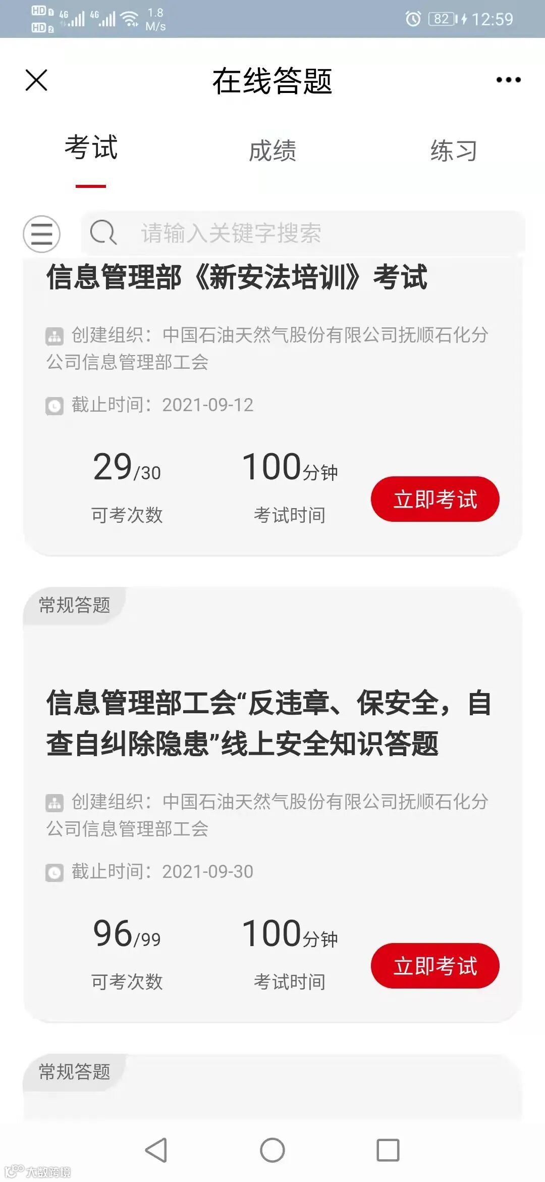 充分利用党建平台在线答题环节分别开展信息管理部工会“反违章、保安全,自查逢纠除隐患”、《新安法培训》线上安全知识答题活动。