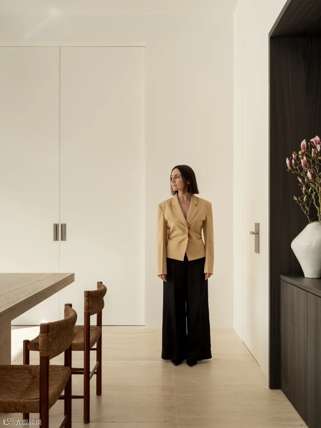 这是莫斯科市中心一座历史悠久的建筑,这对夫妇希望为他们的新房子带来不一样的生活体验。 目标是让新居成为一个宁静的白色纯粹的心灵归处,为从城市的喧嚣归来后提供一种平静的氛围。他们精致的品味和简约的生活方式影响了他们对纯白色与黑色内饰的选择,反映了他们独特的只穿白色与黑色的着装偏好。同时,他们追求简朴的生活,因此,不需要太多的储物空间,而是选择大量留白。