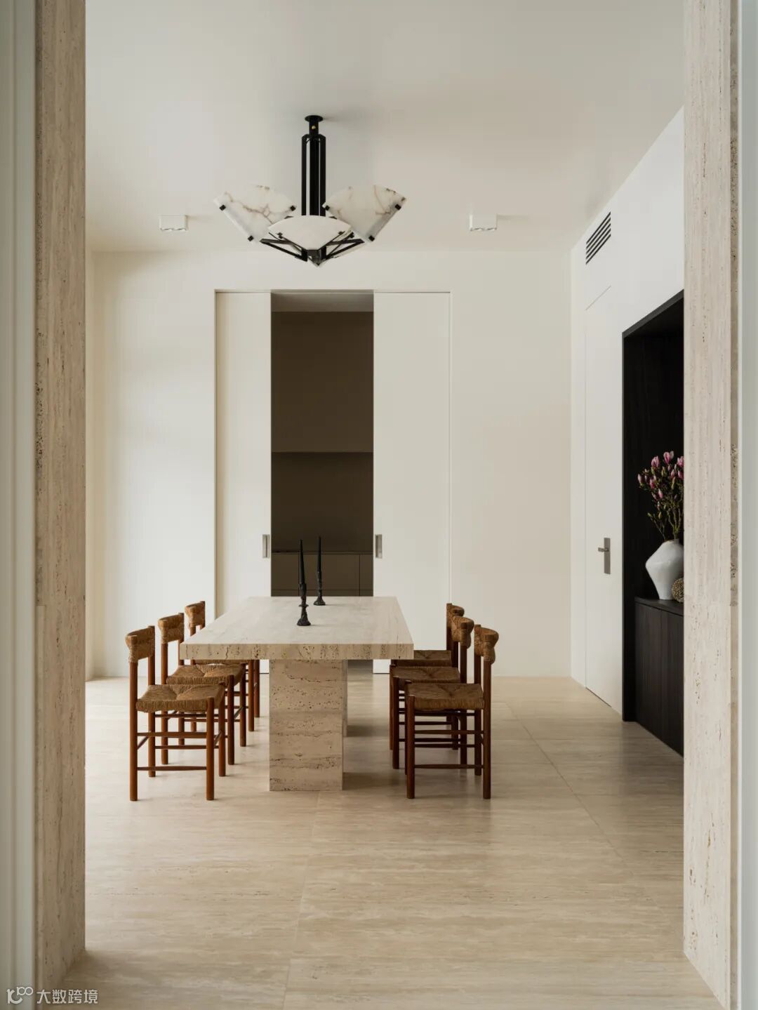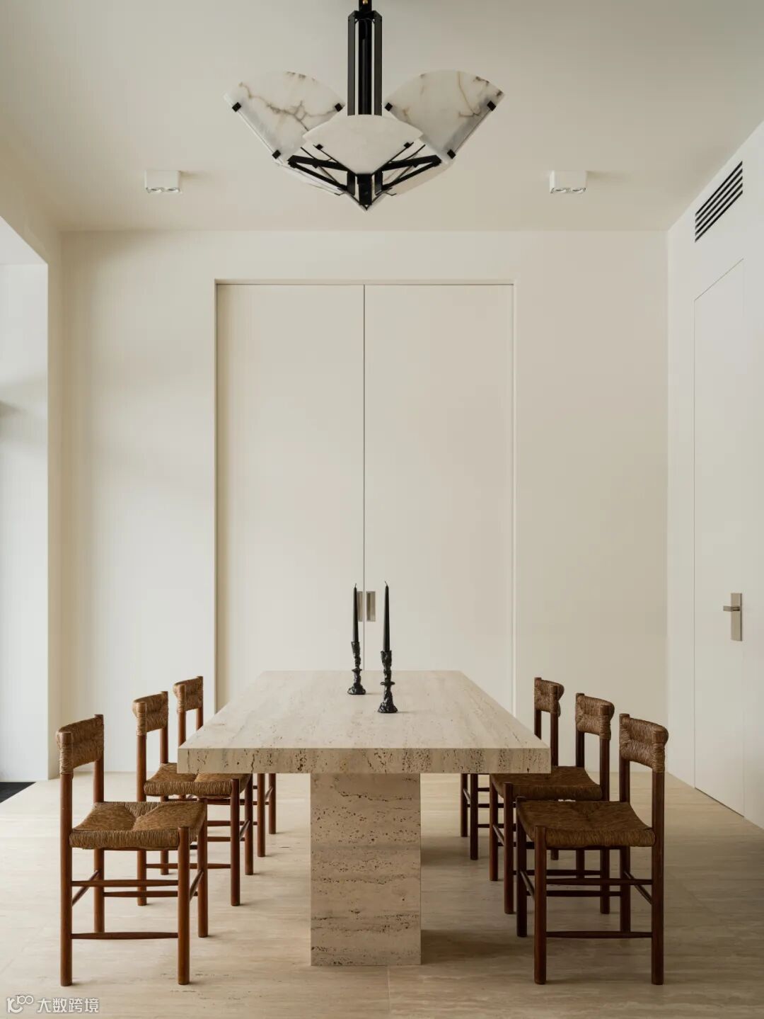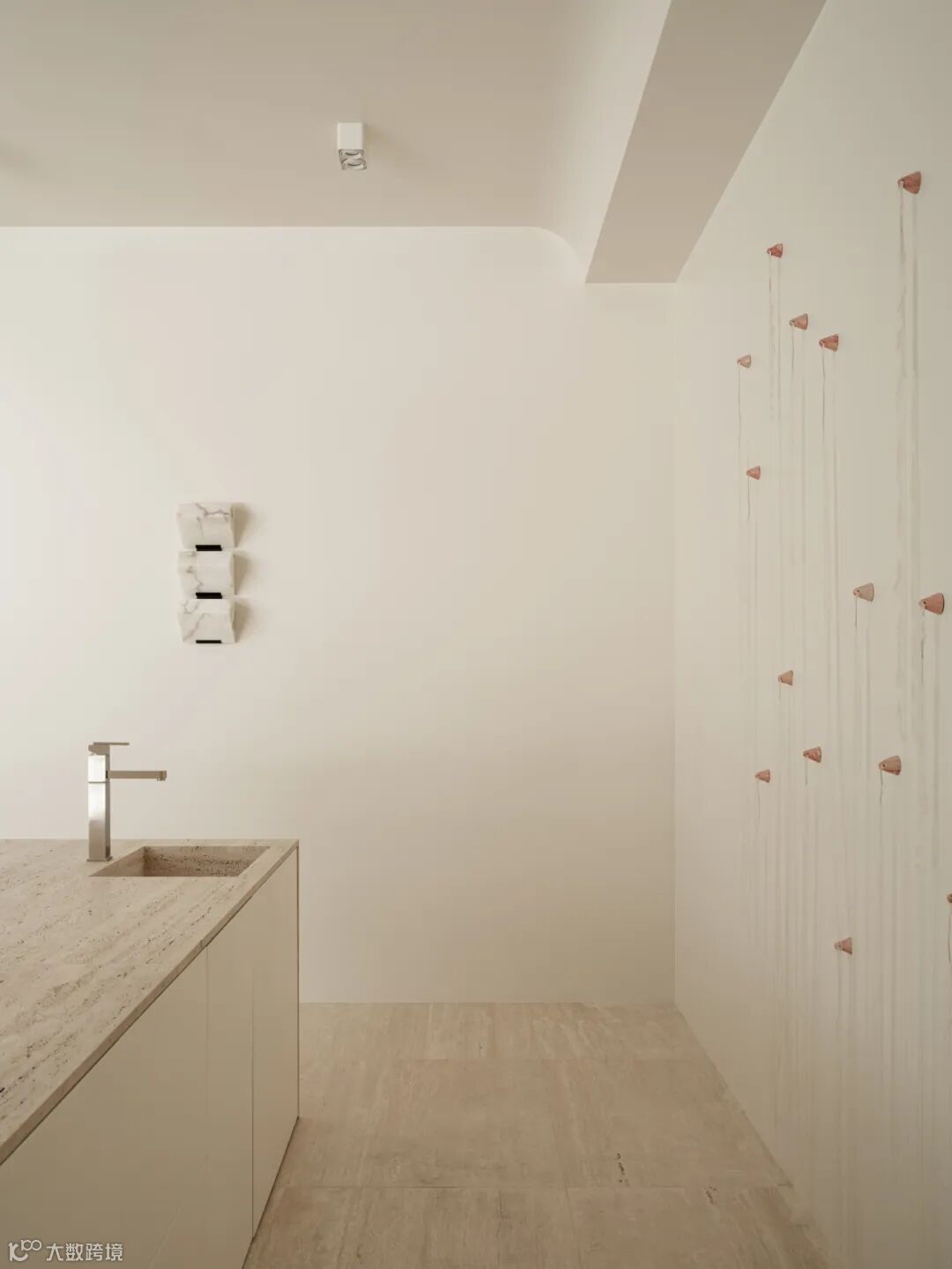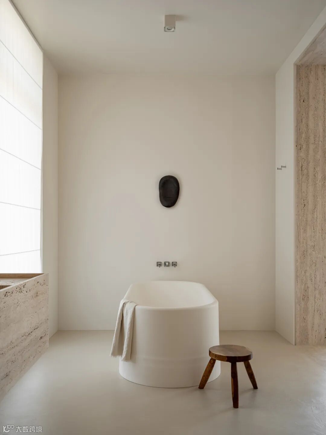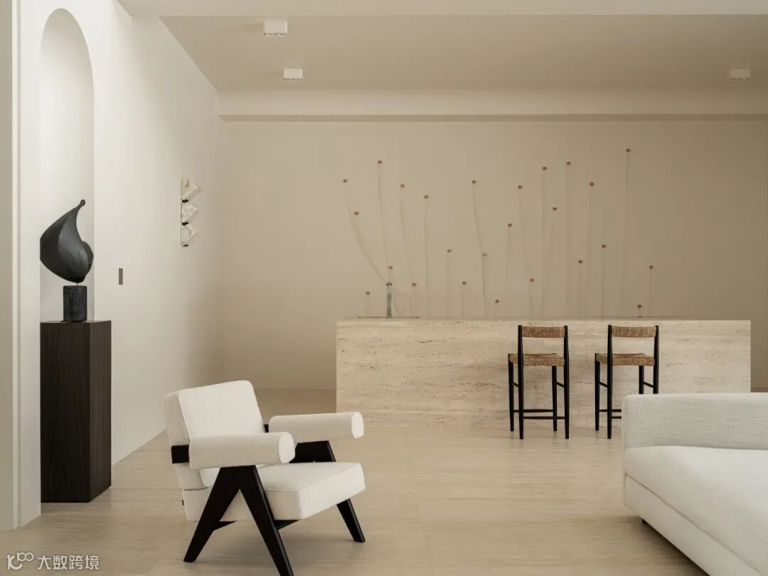 The owner initially wanted an all-white tone for the interior. After communication, Olga Manakova used warm colors that tended to be travertine, with black as an embellishment in parts.The designer believes that adding a small amount of warm colors and soft materials will maintain the comfort and touch of the room.Additionally, when choosing materials, emphasis was placed on natural elements.