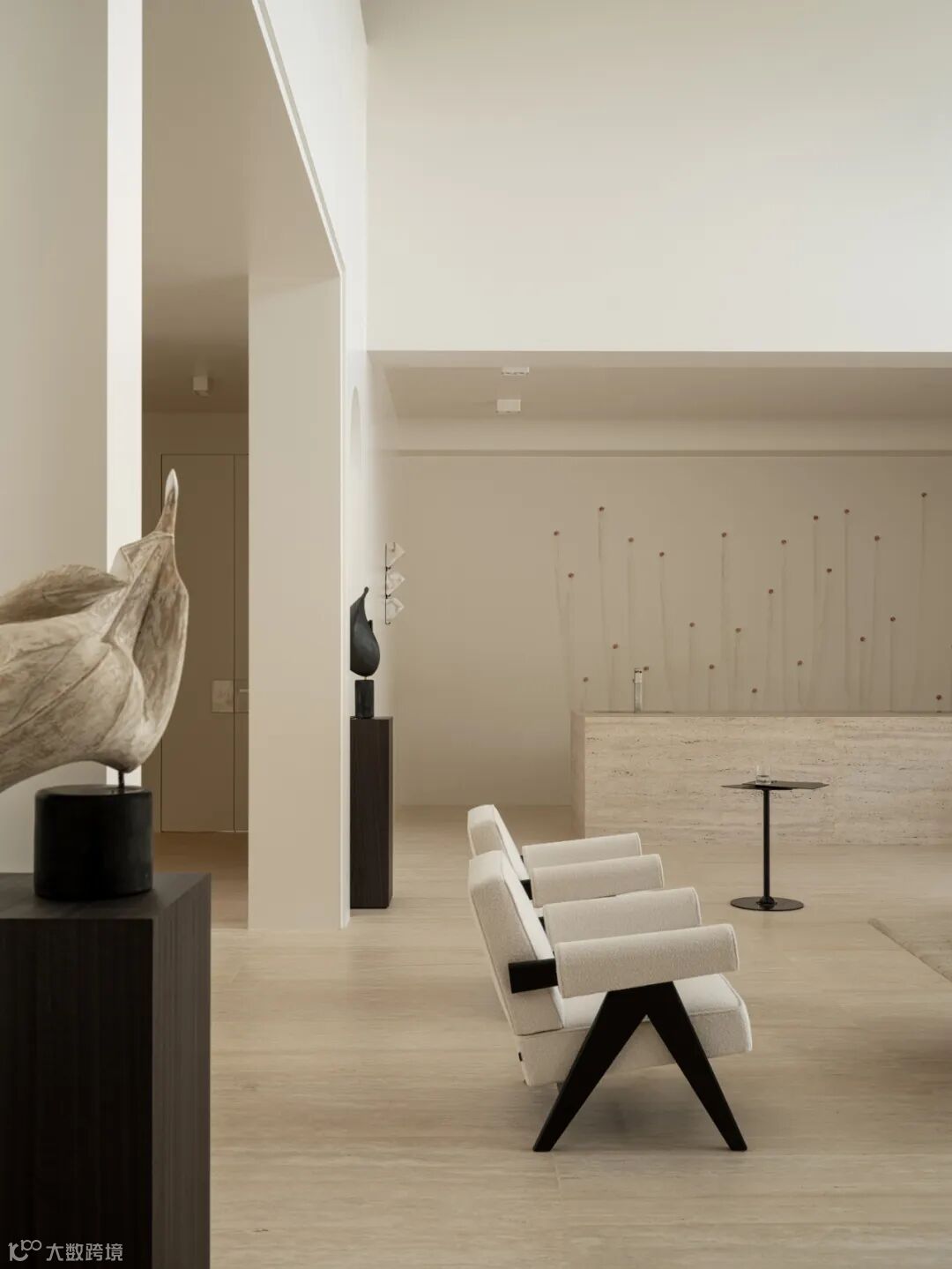 This is a historic building in the center of Moscow, and the couple wanted to bring a different living experience to their new house.The goal was to make the new home a tranquil white pure retreat for the soul, providing a calm atmosphere after returning from the hustle and bustle of the city.Their refined tastes and minimalist lifestyle influenced their choice of all-white and black interiors, reflecting their unique sartorial preference of wearing only white and black.At the same time, they pursue a simple life, so they do not need too much storage space, but choose to leave a lot of blank space.
