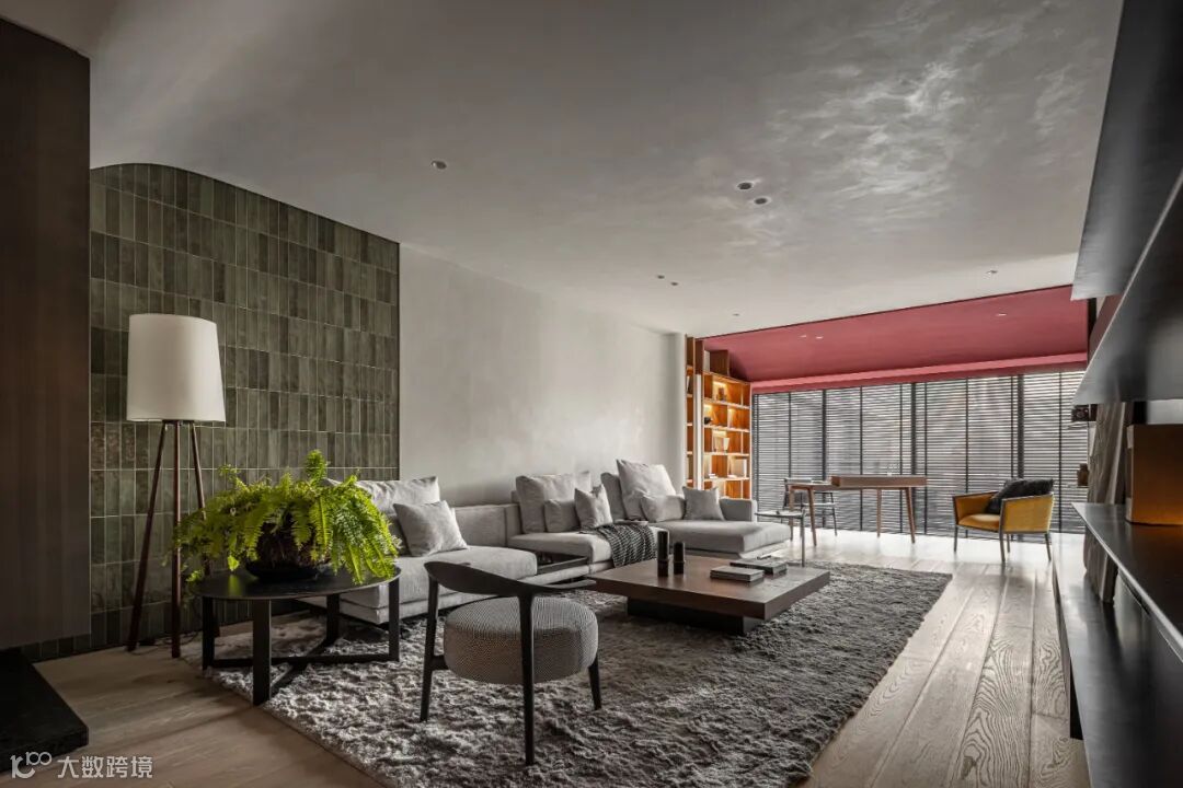 Material selection is bold avant-courier of red and green, to collision give different space atmosphere, intense and characteristic of material texture, mortar coating, glazed tile, glass yarn, gives space texture, silky surface and light tracing the ten thousand kinds of amorous feelings of different.