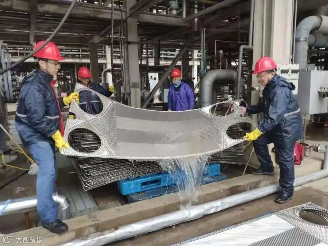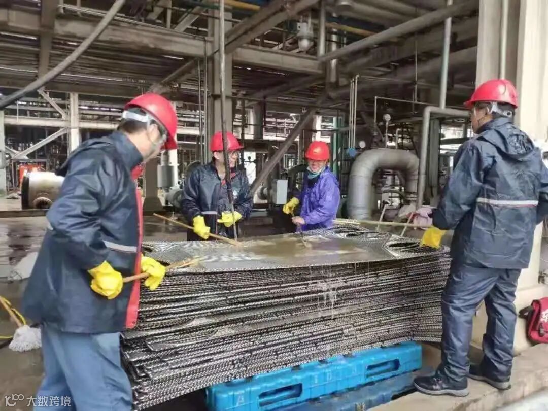 丁烯车间换热器在经受流体长时间冲刷后,板片中的孔道易结垢堵塞,严重影响换热效率,2017年大检修时,该车间的二台换热器采用第三方清理的方式,花费三万余元。
