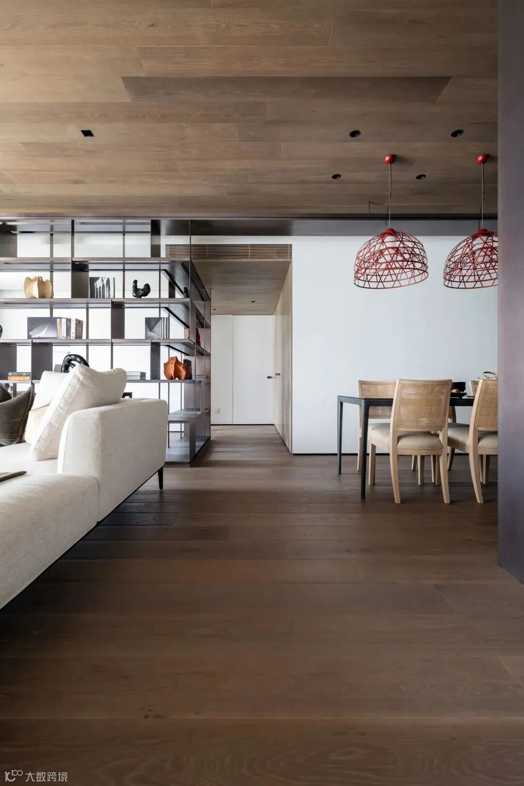 作为家的容器,它以诗意的面貌,于心的静停泊处,呼唤自然与生活的归来。宽阔的客餐厅空间入门即见,温润的木材自地面延伸至天花,赋予空间温馨与舒适。大面积开窗再次将自然迎入生活。