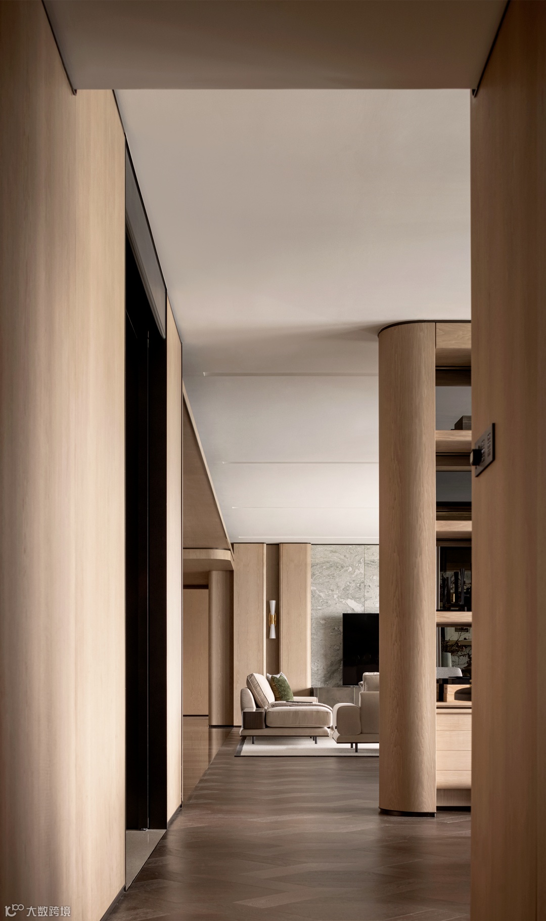 新联阳·雍萃项目坐落于繁忙城市与生态近郊之间,在城市接壤处实现一片城市绿洲,是设计目标,“如何融入居住生活、抽离城市喧嚣,并将周遭自然环境气息引入空间”便成为设计的出发点。