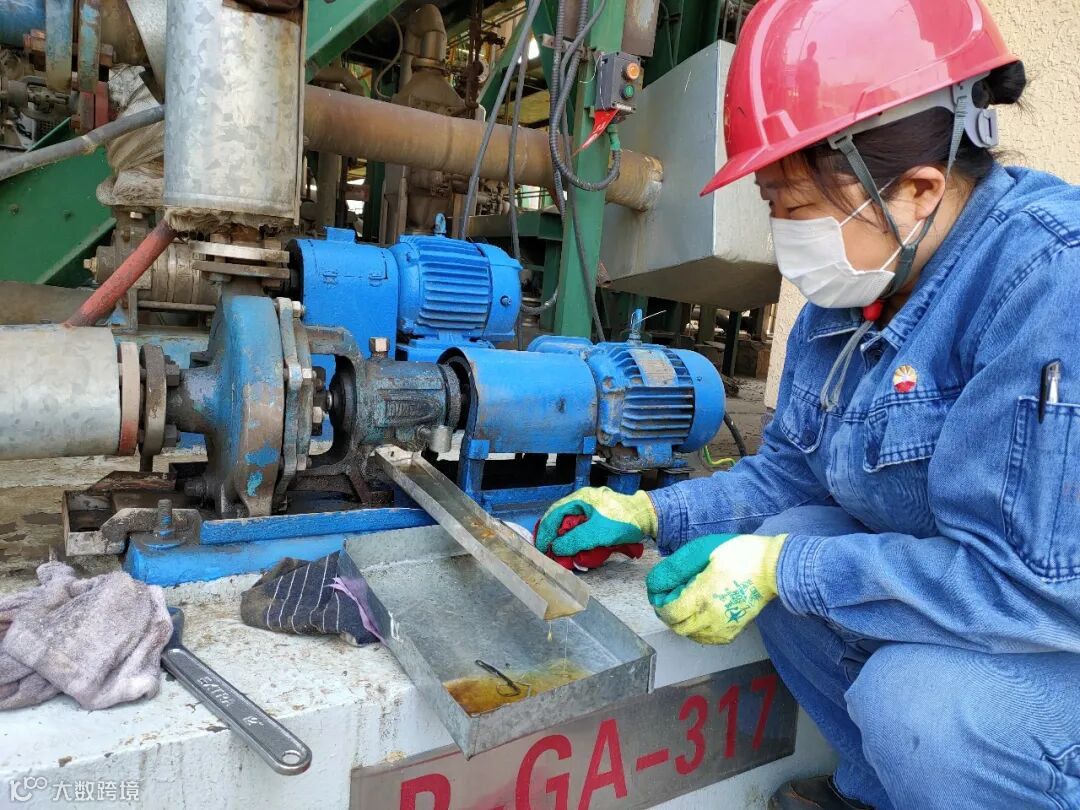 刘艳虹,润滑油工,检修期间负责给装置100多台设备换油,经常满身的油,满脸的污,没有一天干净样子,但是她却说“油落我身上我不怕,我得保证油不落地!”