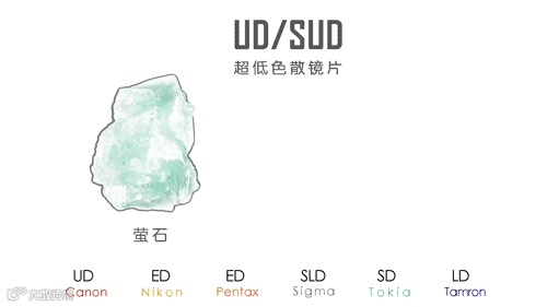 UD:超低色散镜片Ultra Low Dispersion。因为用提纯萤石造价太贵了,人们就研发出了 UD玻璃。2片UD镜片的作用与一片萤石镜片的作用相当。
