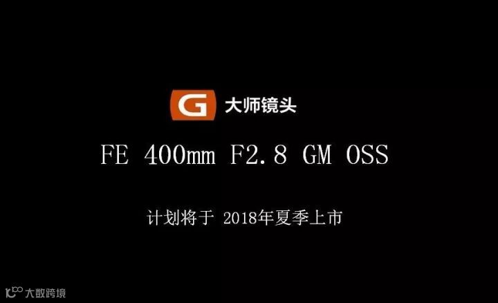 索尼此次还宣布,用户期待已久的大光圈超远摄全画幅G大师镜头FE 400mm F2.8 GM OSS正在研发中,预计将于2018年夏季面世。新的镜头将秉承G大师镜头系列一贯的高分辨率成像特性和柔美的焦外虚化效果。其 400mm焦距和F2.8大光圈将为体育、新闻和野生动物摄影师提供新的拍摄体验,让决定性瞬间更精彩。索尼致力于不断研发、完善镜头群,以满足不同用户的拍摄需求;并提供更加丰富的产品,以最大限度发挥微单系统的优势。新款超远摄恒定光圈FE 400mm F2.8 GM OSS G大师镜头的更多信息将在今后发布。