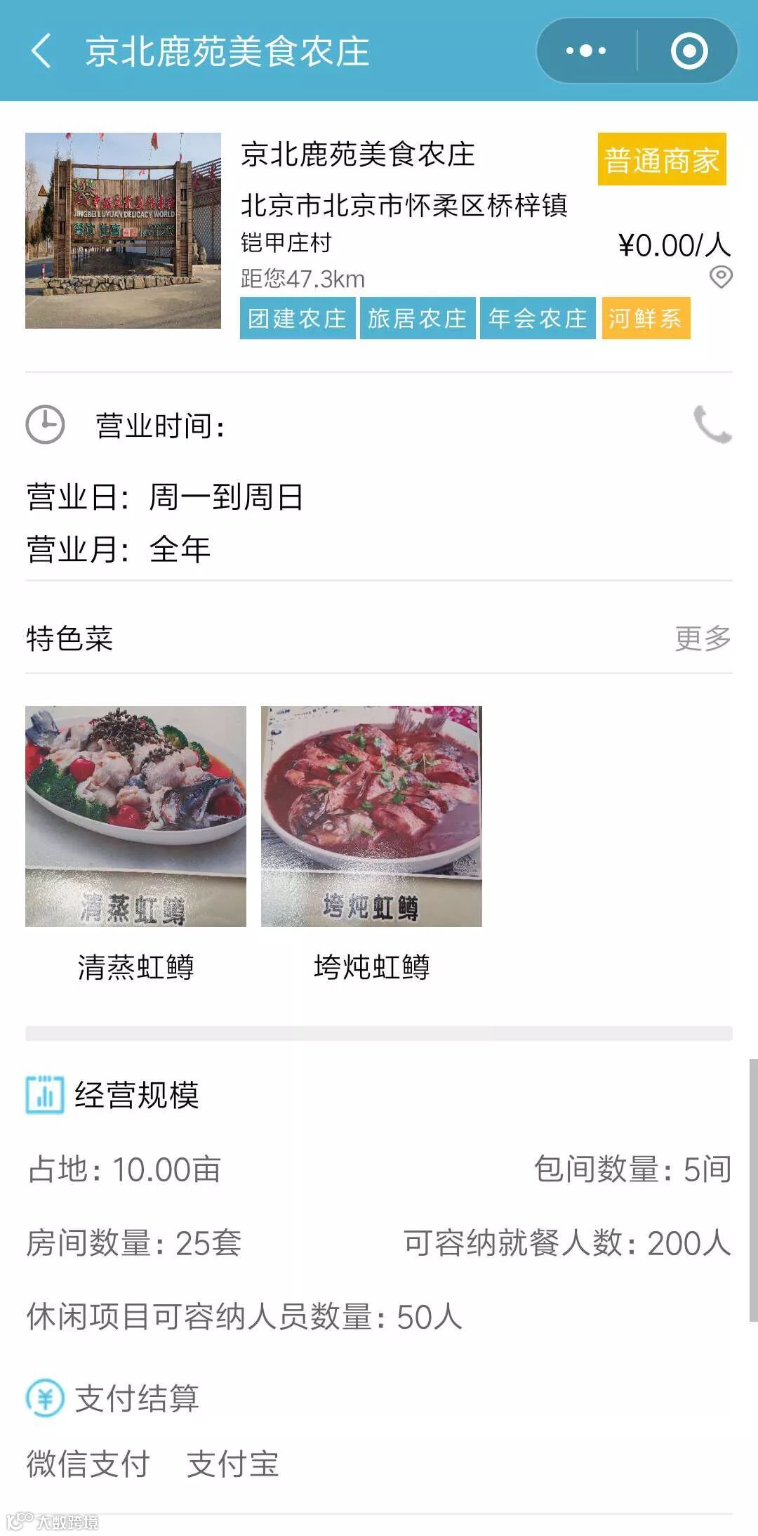 微信搜索“农汇农庄”小程序,可查看农庄详情。