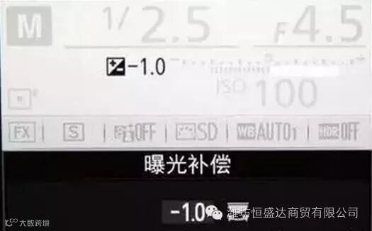 f/4.5 1/250s 200 曝光补偿为:-1EV 尼康相机减少1EV曝光补偿的设置菜单