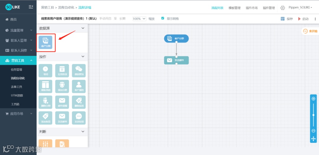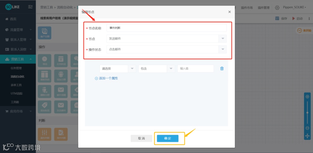 操作实例:通过流程自动化来给SOLIKE™线索库当中的目标客户进行自动化的邮件提醒,并筛选出打卡邮件且未退订的客户,并提供联系方式给销售,进行进一步地线索培育。