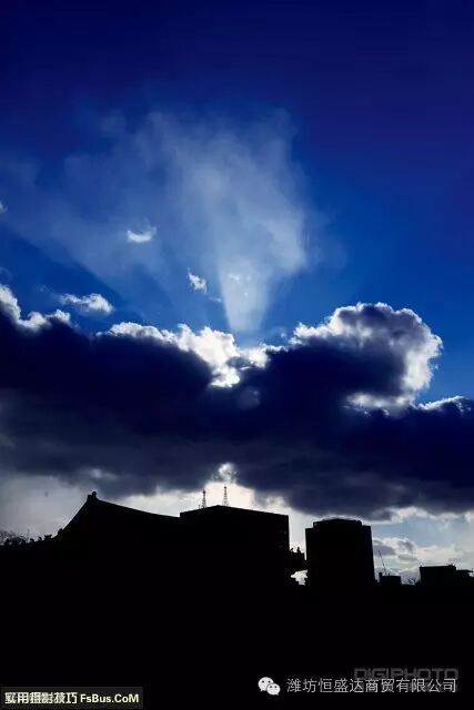 在以天空为主体的摄影中,若包含了地面上的建筑物或其他景物,摄影者应慎重考虑画面的构图。可以使飘浮着美丽云彩的天空占据画面的2/3左右,并充分表现其宽度和高度,而把其他地面景物安排到黄金分割线的交点上,并尽可能避免地面景物占据画面的中心区域的情况出现。这样既表现了地面景物的特点,又描绘出了天空浮云的美丽。