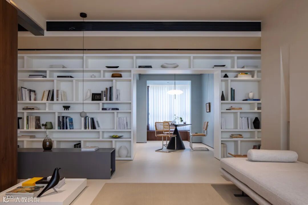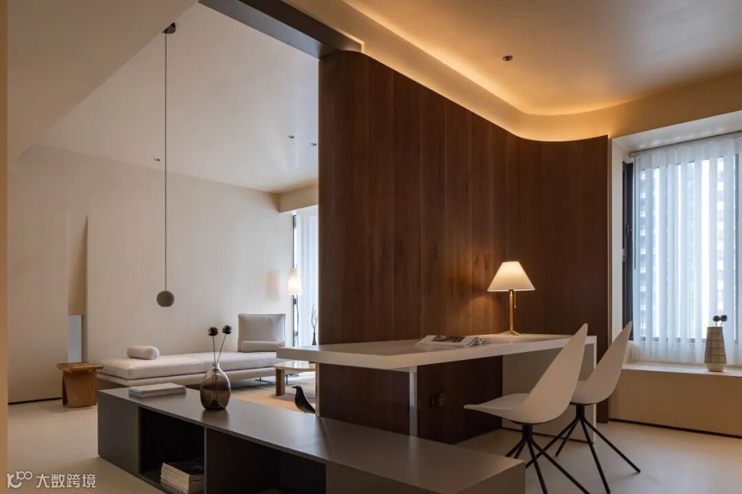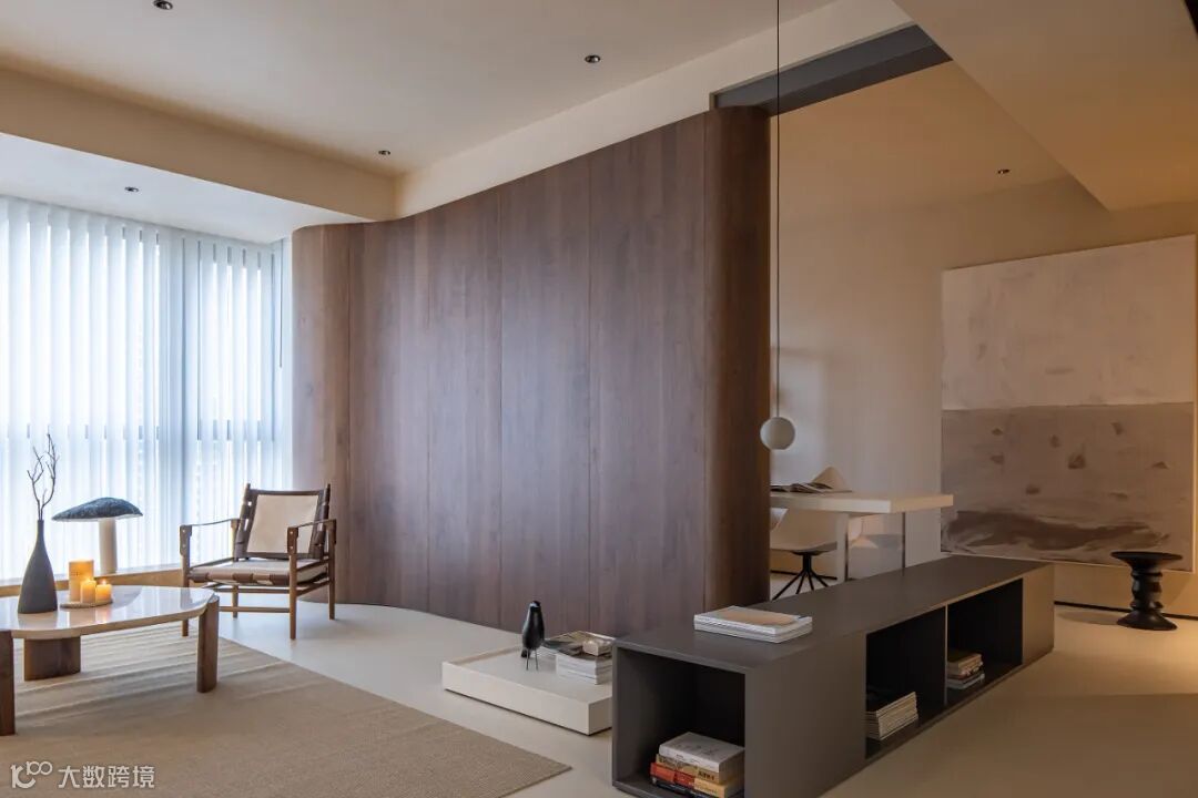 弹指芳华如电。在客厅与书房之间塑造的不仅有空间,更有时间。一把真皮帆布的休闲阅读椅优雅嬉皮,博古架上的青瓷纸香墨飞,亚麻材质的自然色与实木纹理共同构成了加的温馨,柔和的转角与流畅的线条让人内心宁静。