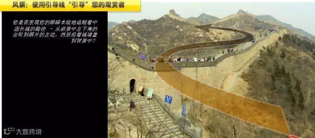 您是否发现您的眼睛本能地追随着中国长城的路径 – 从前景中左下角的台阶到照片的左边,然后沿着城墙直到背景中?