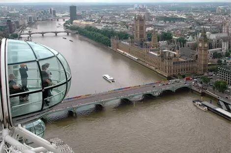 这两张英国伦敦的照片从摩天轮上拍摄。包括相关前景拍摄主体(此例中为摩天轮上的座舱)有时会使平淡无奇的风景照片充满生气,使照片中的风景引人入胜。风景照片有时会得益于包括相关的前景元素,如以上这些实例所示。