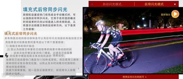 这张骑车者照片在夜间拍摄,只有一个远距闪光灯从左前方作为这张戏剧化照片的光源。