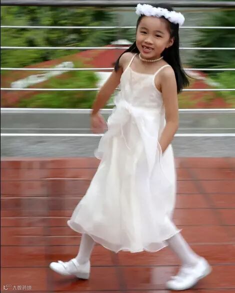 虽然这位女孩被要求摆个拍照的姿势,她却突然弯腰并将手放到膝盖上。这一举动将她调皮的个性表露无遗。