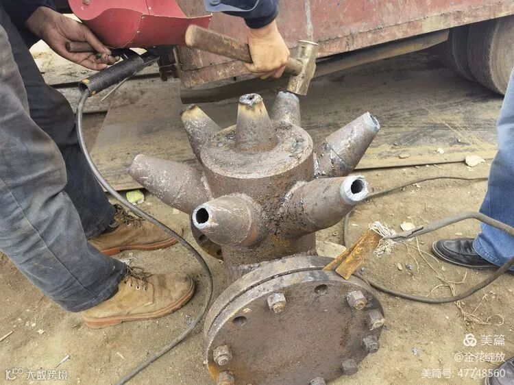 技术公关小组反复查找调合喷嘴设计材料、多次精细计算,自己动手利用角磨机对调合喷嘴进行改造。在保持出口截面积不变情况下,将原来7个直径25mm的喷嘴,封堵2个,切削剩余出口喷嘴改变射流角度,形成5个直径29.5mm的喷嘴。取得了改变罐内介质搅拌状态的效果,达到了在循环2小时内实现调合均匀的目的。